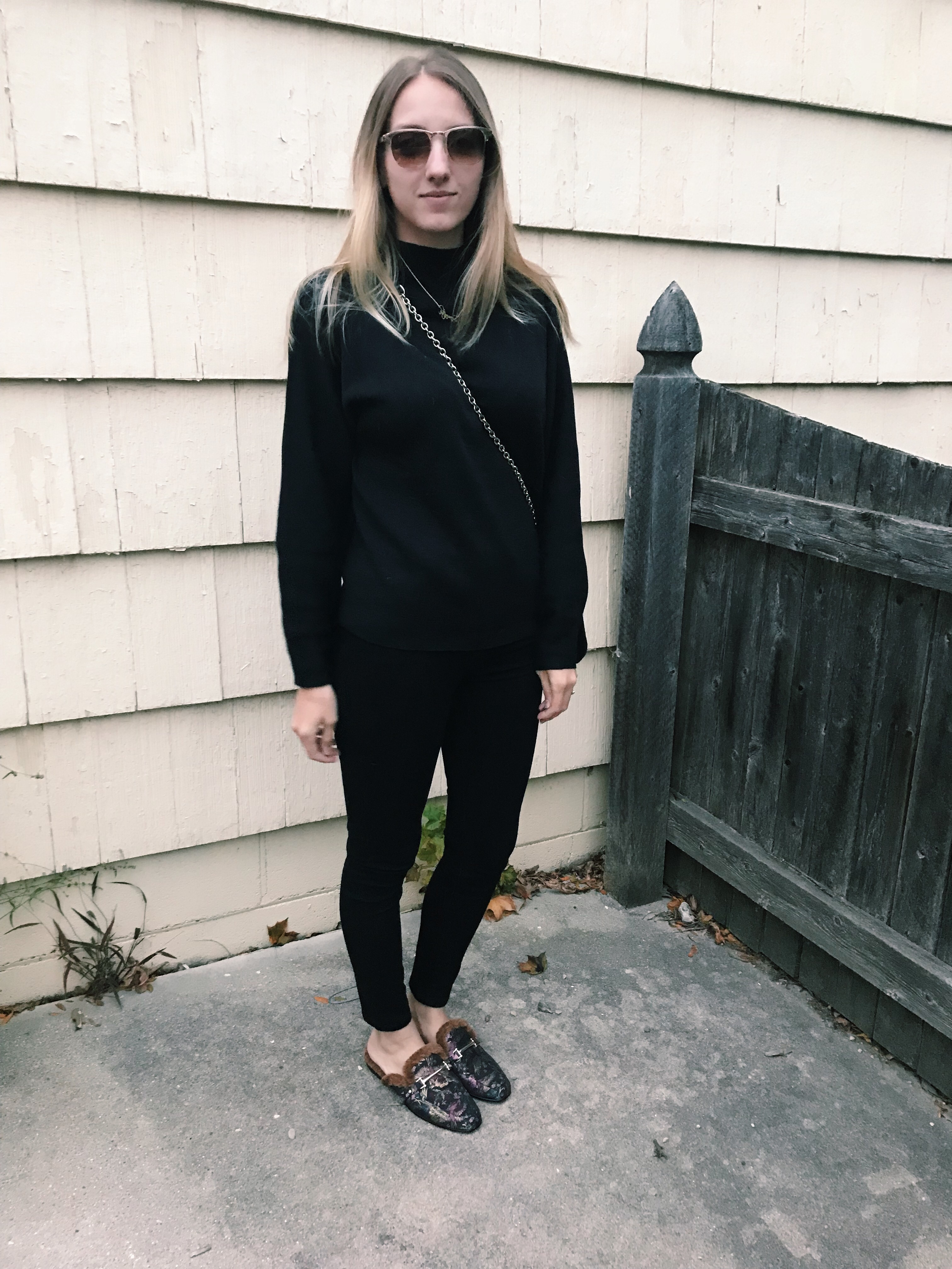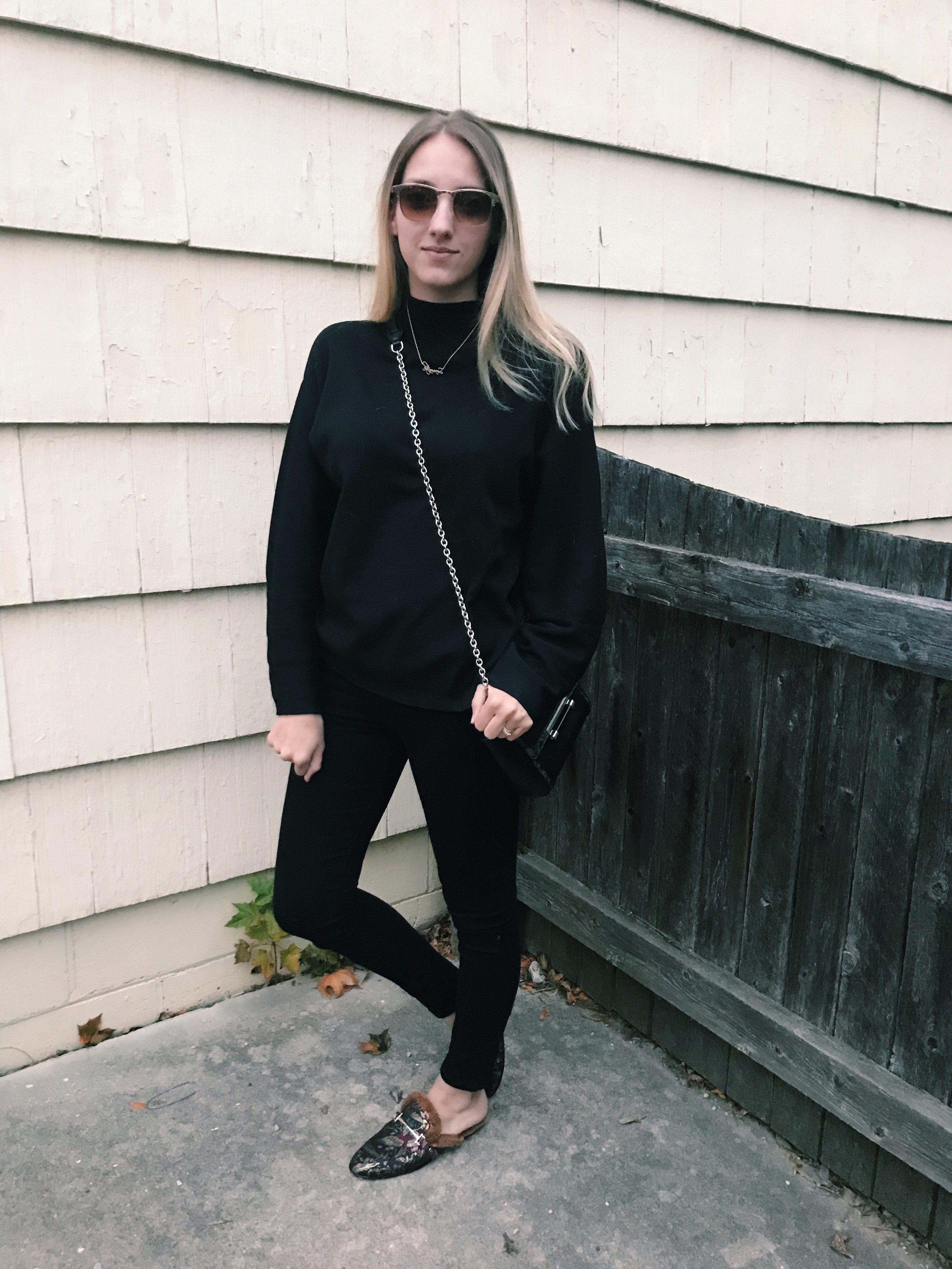 H&M Sweater/Forever 21 Jeans/Sam Edelman Mules/DVF Bag/Francesca’s Sunglasses/Etsy Necklace